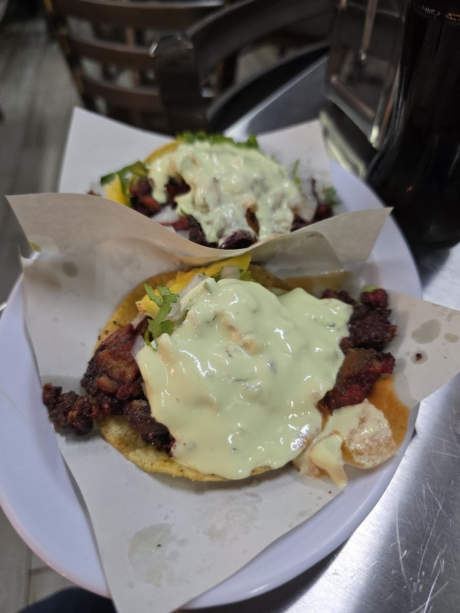 Vien ricos tacos de asada Pastor y los de tripa para chuparse los dedos. I went two days in a row for dinner you can never go wrong with tacos but these are delicious